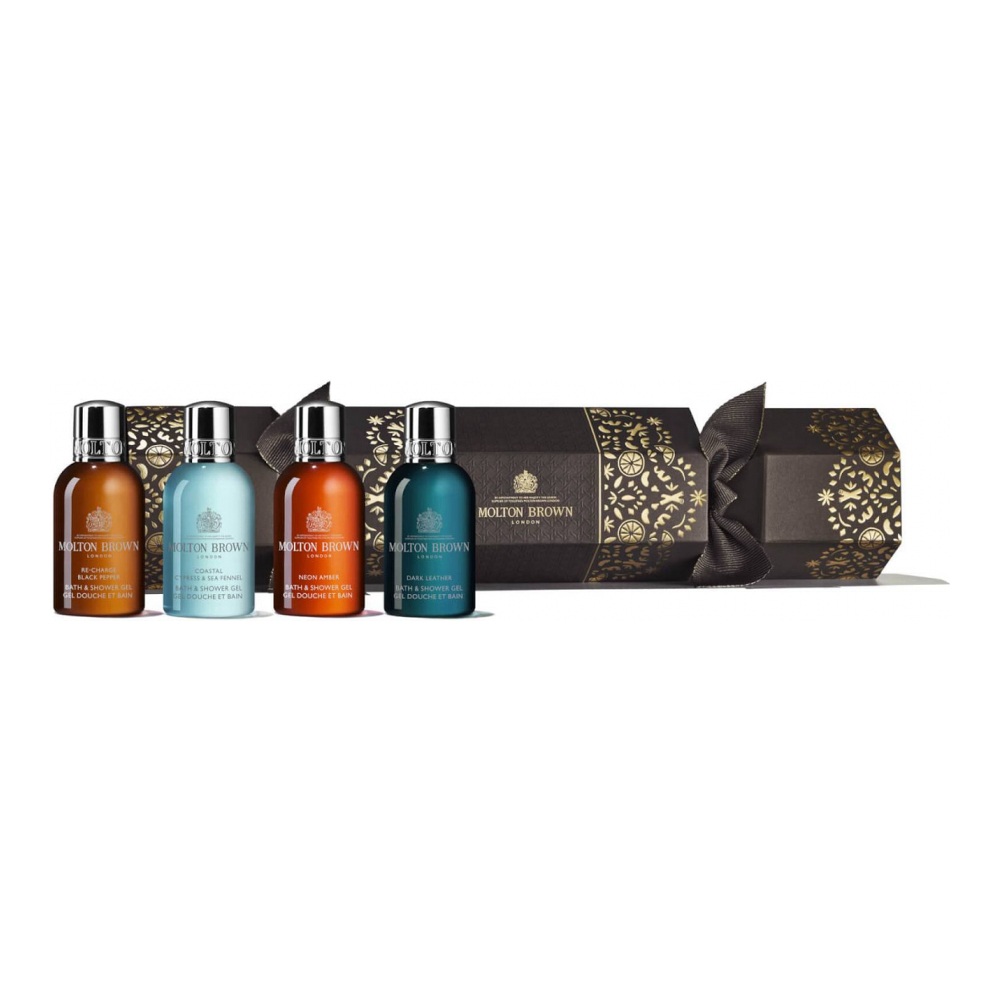 A most sophisticated festive cracker revealing four of our best-loved woody and aromatic body washes; a luxurious addition to a traditionally seasonal tablescape.