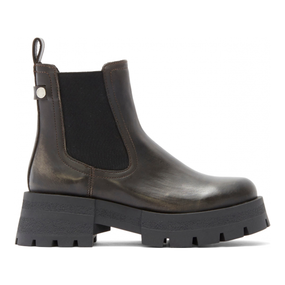 This classic chelsea boot features stretchy side goring and is boosted by a hardy lug platform and block heel.