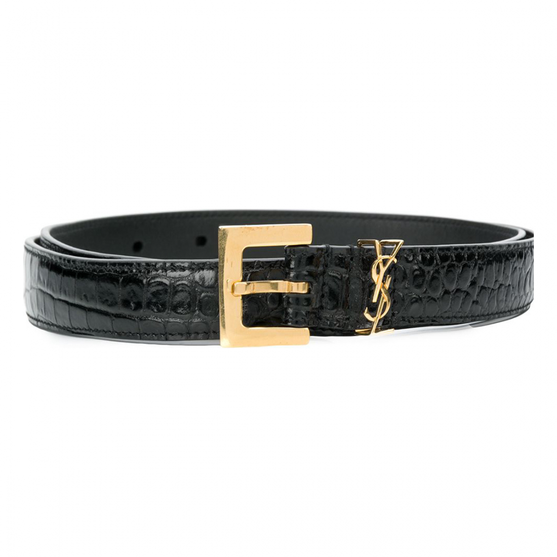 With every new season collection, Saint Laurent continues to reference the rich archive of founder Yves Saint Laurent. Crafted from black leather with a crocodile effect, this belt features a square buckle and a gold-tone monogrammed loop.