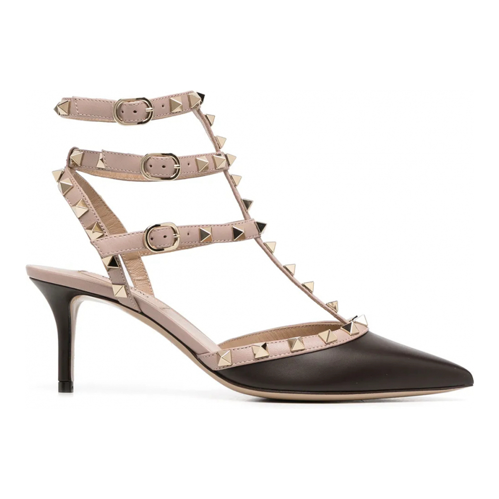 'Rockstud' nappa pumps with adjustable straps and contrast profiles with metal stud application, pointed model, heel, leather sole.