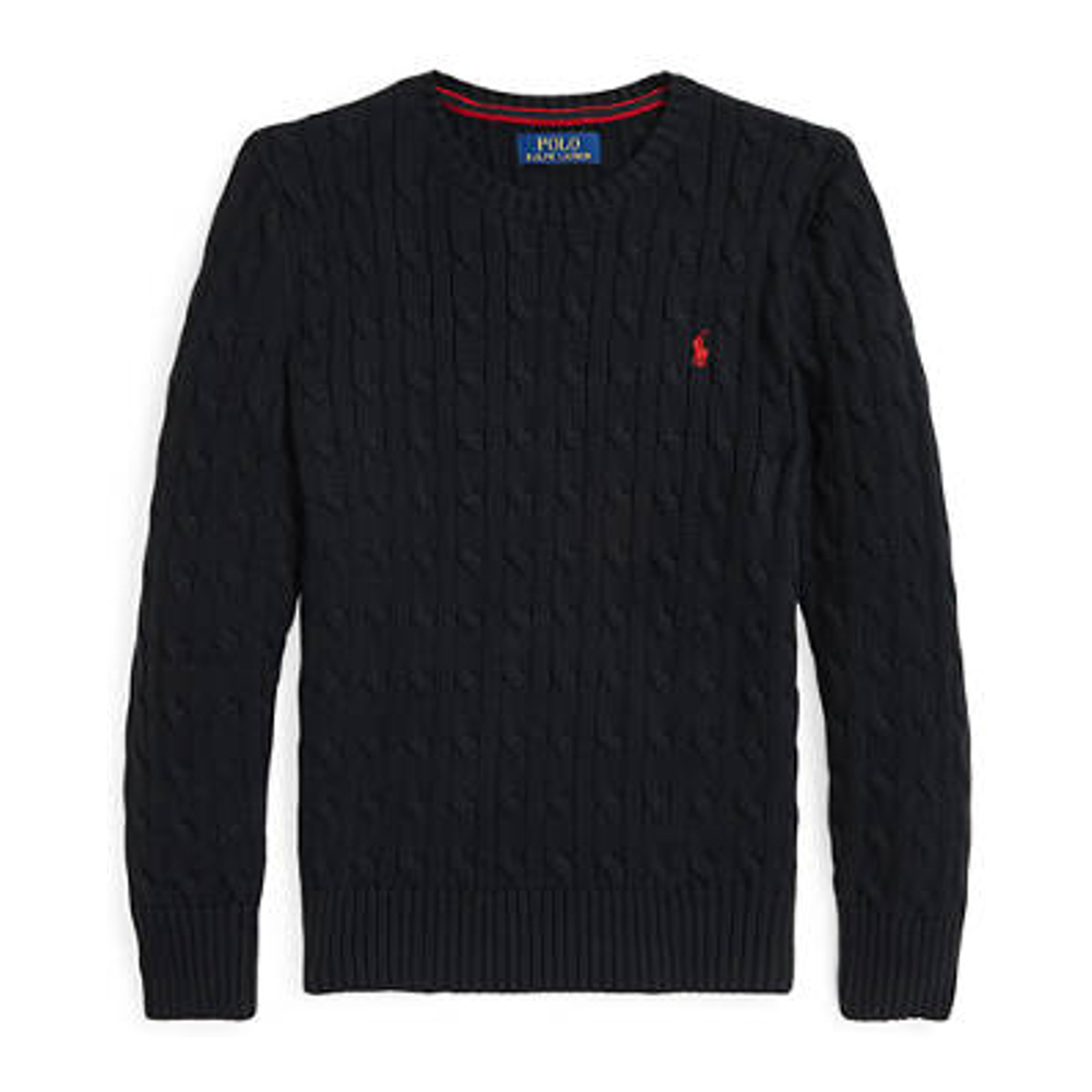 This version of Ralph Lauren Childrenswear's iconic cable-knit sweater is made with breathable combed cotton and washed for added softness.Size medium has a 22" body length (front and back) and a 20.5" sleeve lengthSignature embroidered Pony at the left chestCrew neckLong sleeves with rib-knit cuffsRib-knit hem