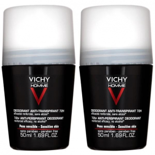 Vichy Homme Déodorant Bille Contrôle Extrême - 50 ml, 2 Pièces