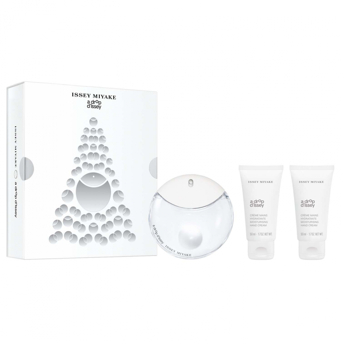 Le coffret comprend : A Drop D'Issey Eau de Parfum 50 ml + 2 x Crème pour les Mains 50 ml