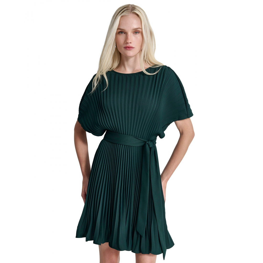 Perfect pleats finesse this timeless dress by DKNY, finished with a belt at the waist for a form flattering style.