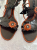 Elegante Sandalen mit einem Muster aus Blättern und Blumen in Bronze.
