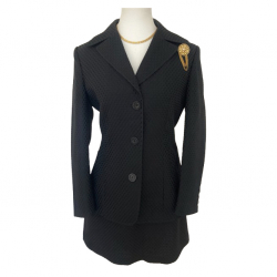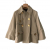 Signed brass-tone speckled buttons add sparkle to the beige.