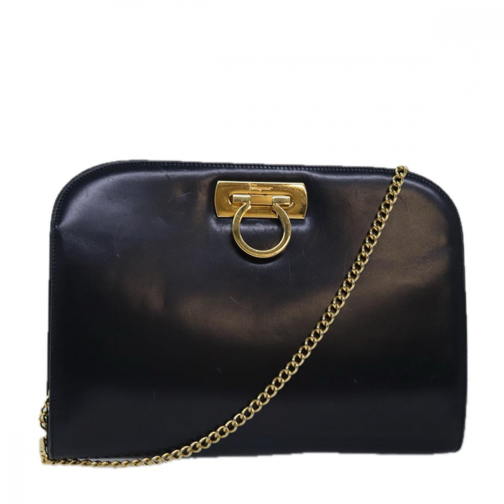 Wear Signs: The Salvatore Ferragamo Gancini shoulder bag in black leather is a sophisticated fusion of classic design and modern elegance. Crafted from high-quality leather, the bag features a sleek black hue that enhances its versatile appeal. The Gancini hardware, a signature element of the brand, adds a touch of distinctive luxury with its polished metal detailing. The item shows rubbing and slight scratches on the surface and corners, with the shoulder strap also having slight scratches. The metal fittings have minor scratches, and there is rubbing inside and in the pocket. Additionally, there is a storage smell. We recommend that you look at all the photos before making your purchase to ensure that you are satisfied with the condition of the item.